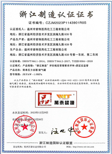浙江制造認(rèn)證證書