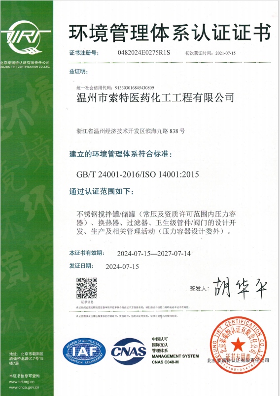 環(huán)境管理體系認(rèn)證證書