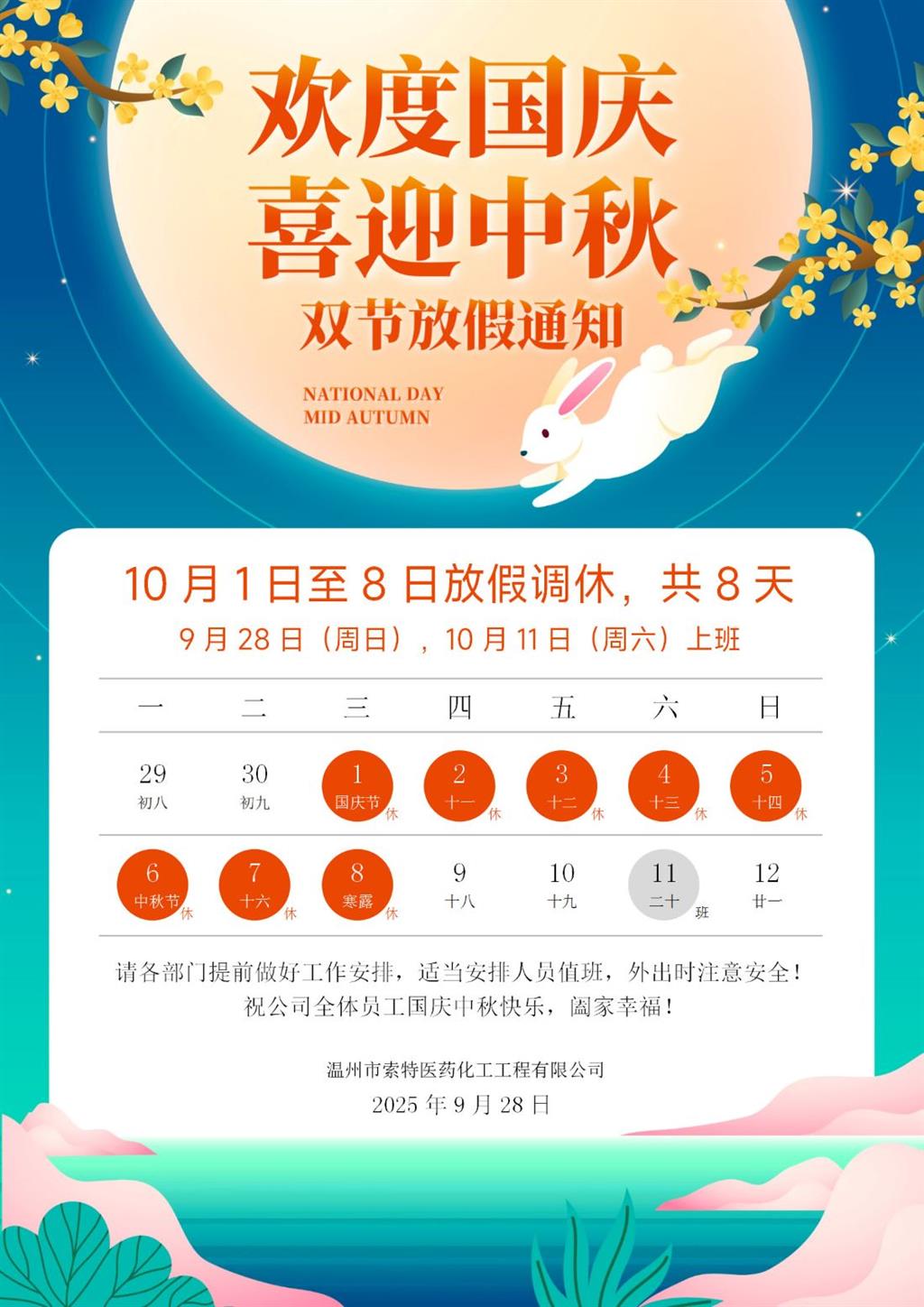 喜迎國慶,月滿中秋 | 索特醫(yī)藥化工與您共賀家國團圓