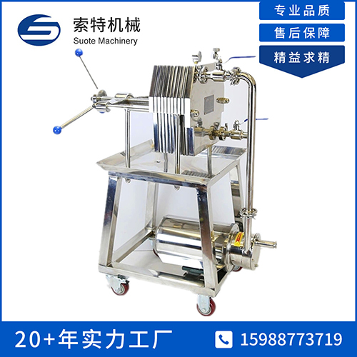 該濾器具有濾液損耗少,流通量大,操作簡單,拆裝方便,易清洗等優(yōu)點。濾板采用特殊結(jié)構(gòu)的平面螺紋網(wǎng)狀形,光滑平整,使濾材(濾布、濾紙、濾膜)不易破損,能有效地延長各種濾材的使用壽命,從而降低生產(chǎn)成本。本濾器配備不銹鋼輸液泵,其配用電機功率小,耗電省。機架下裝有膠輪,移動靈活、輕便。